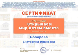 Сертификат участника конференции «Открываем мир детям вместе» АНО Центр культурных инициатив «Чтение детям», г. Москва.